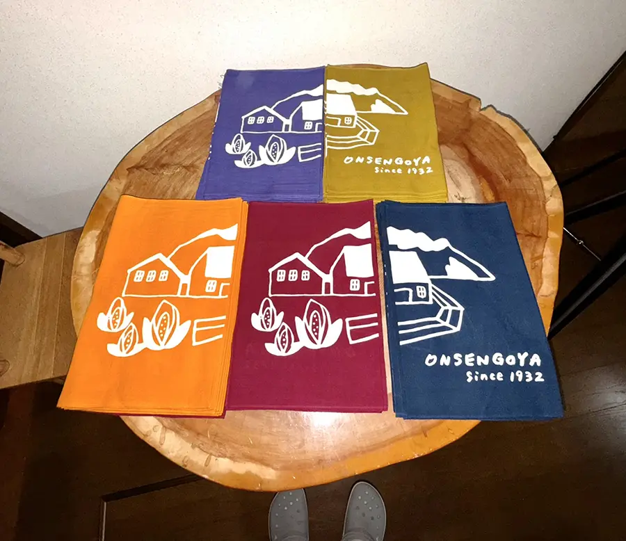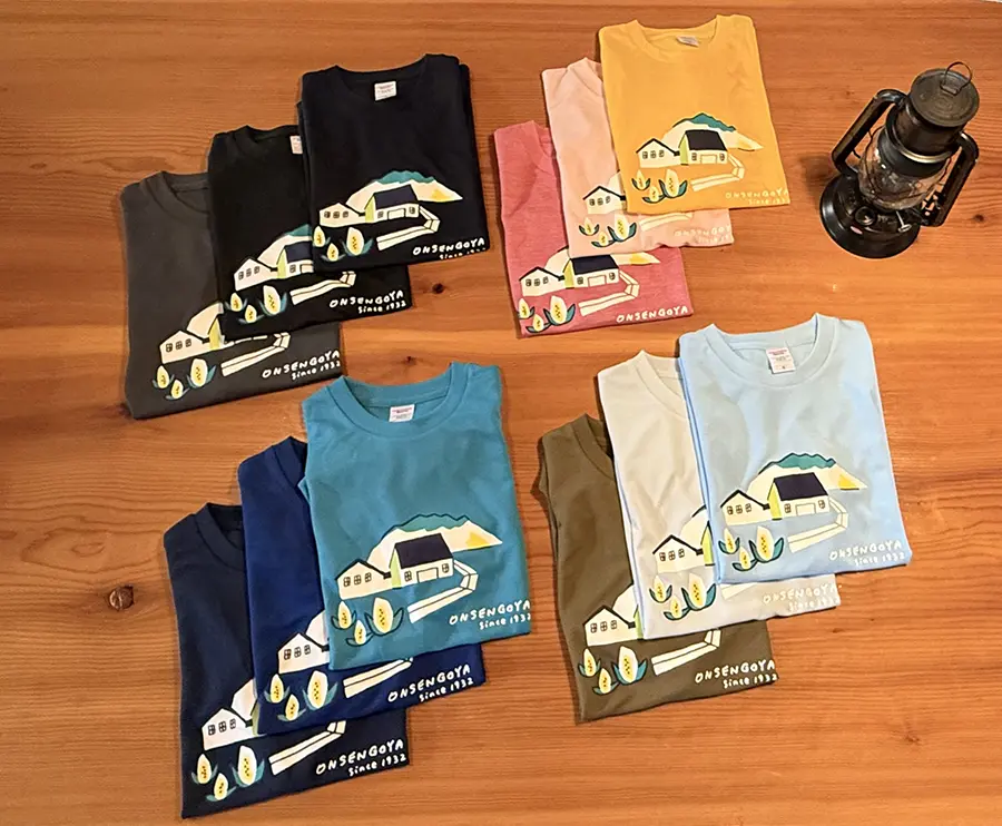 イラストレーターの落合恵さんデザインのONSENGOYA Logo。 新しいカラーバージョンのTシャツが追加されました。ご宿泊者様のみの販売となります。HIGASHI ALPS